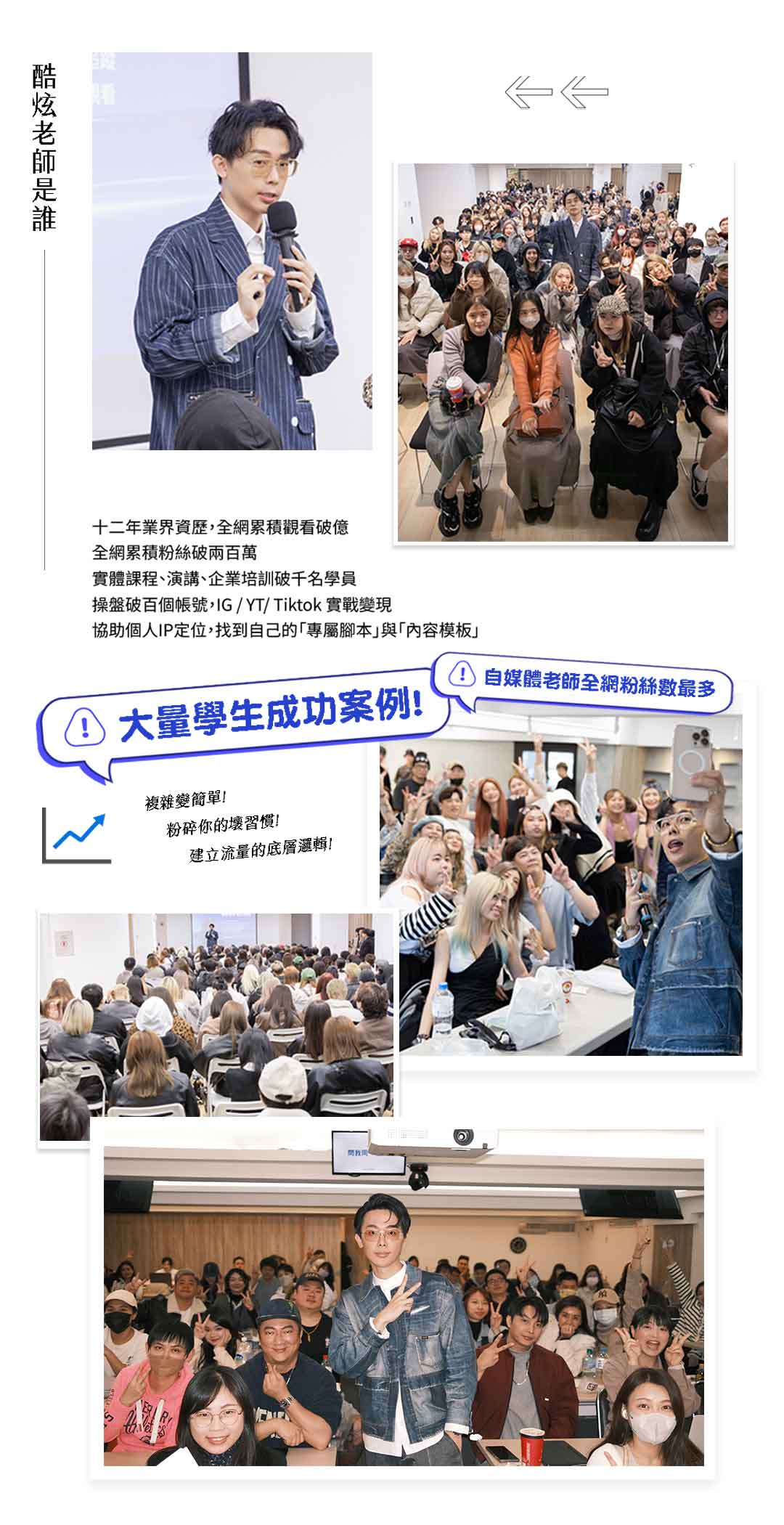 如果你正在經營短影音,卻總覺得流量有了,機會卻沒來,那這場分享會就是為你準備的。 由酷炫老師親自帶領,分享他如何用短影音持續創造高曝光、高詢單與高變現成果。多年實戰累積,幫助無數品牌與個人把影響力放大、把流量變成實際收入。這不只是一場分享,而是一次讓你重新看見短影音真正價值與可能性的關鍵體驗。