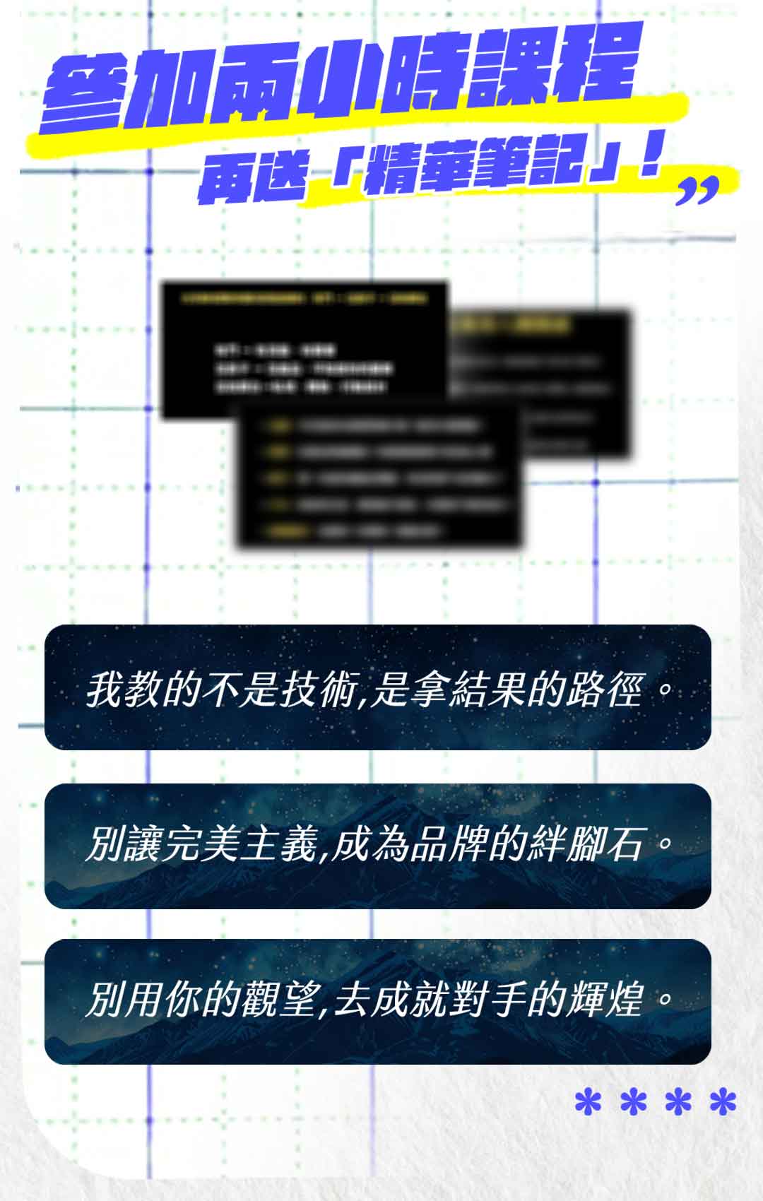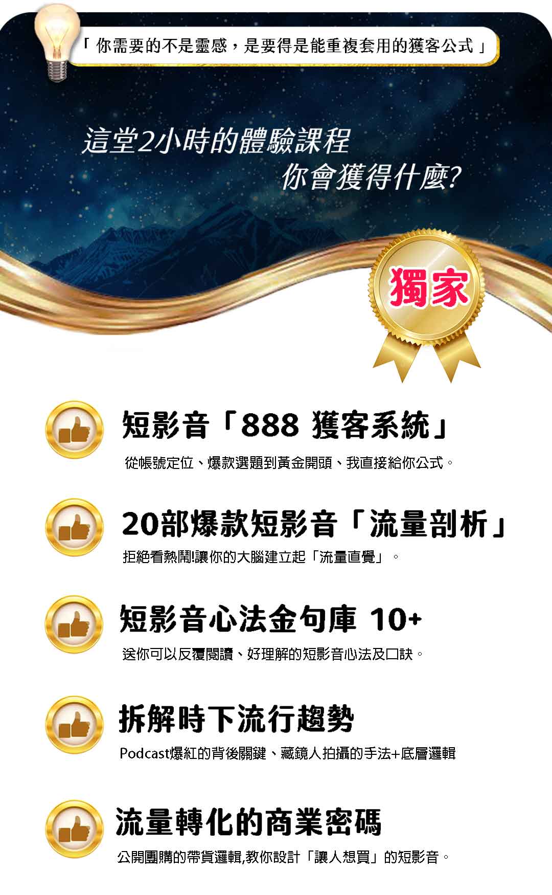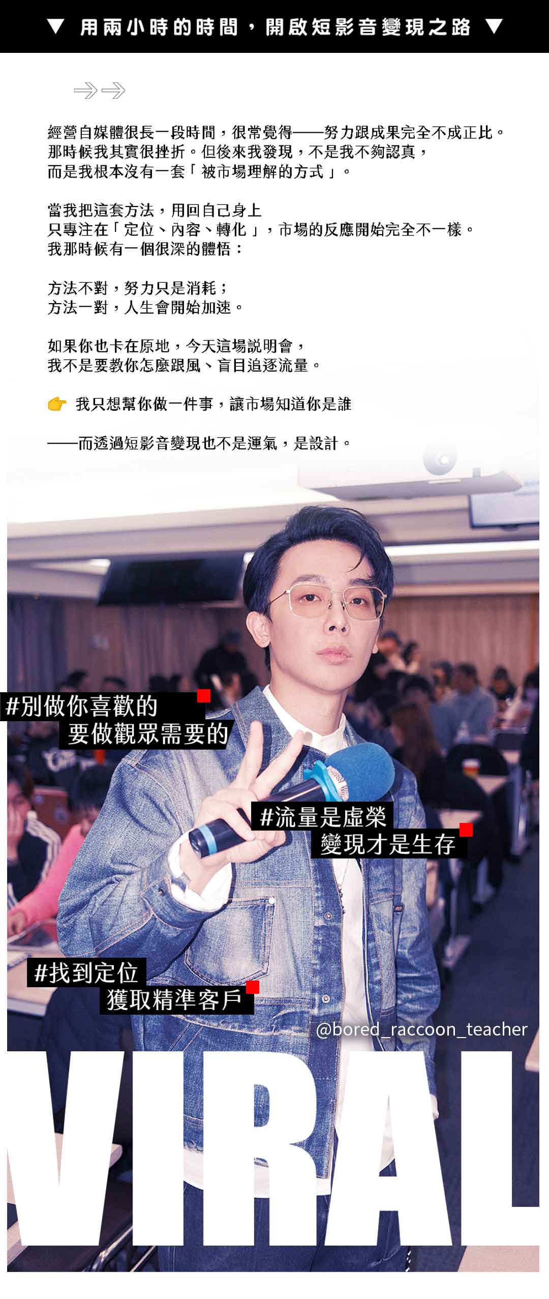 一次看懂短影音真正的價值,當天加贈精華筆記。幫你釐清方向、打破卡關,讓努力開始產生實際改變!