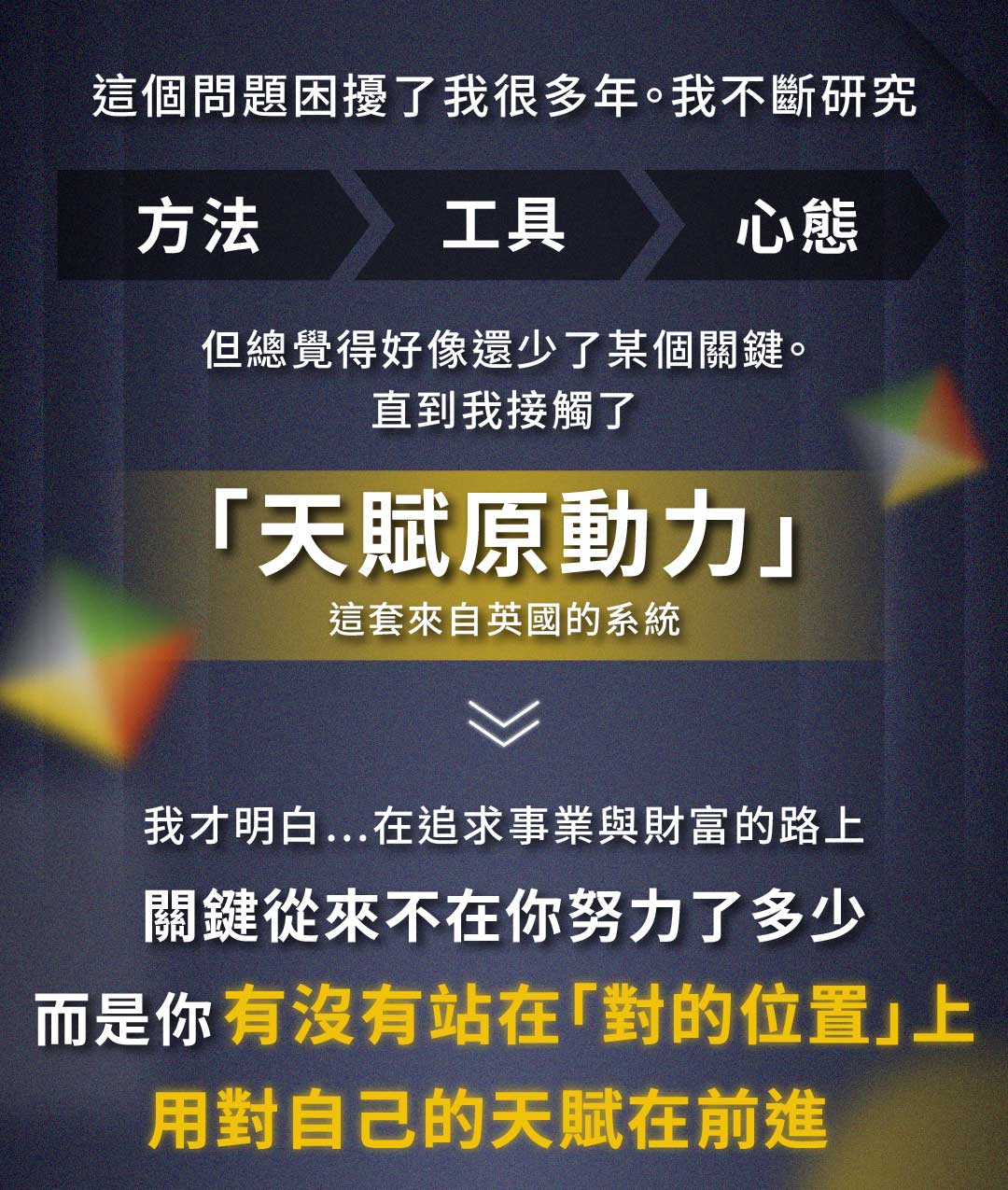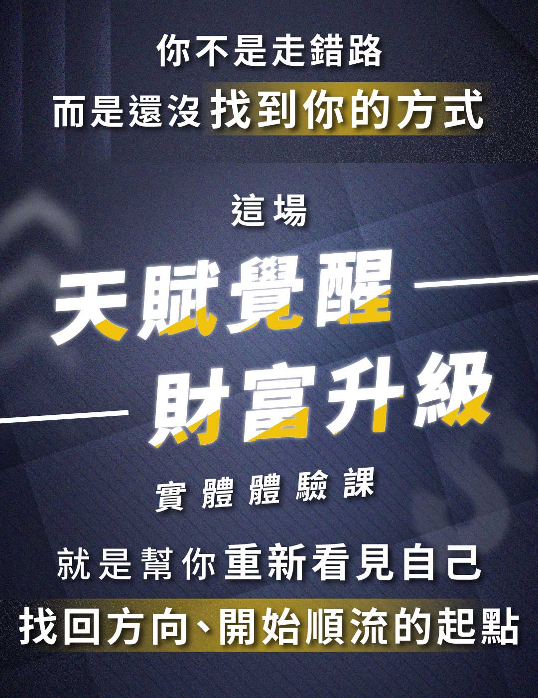 」 先測出你的天賦能量,體驗課中直接對應「最適合你的事業與財富成長策略!」
